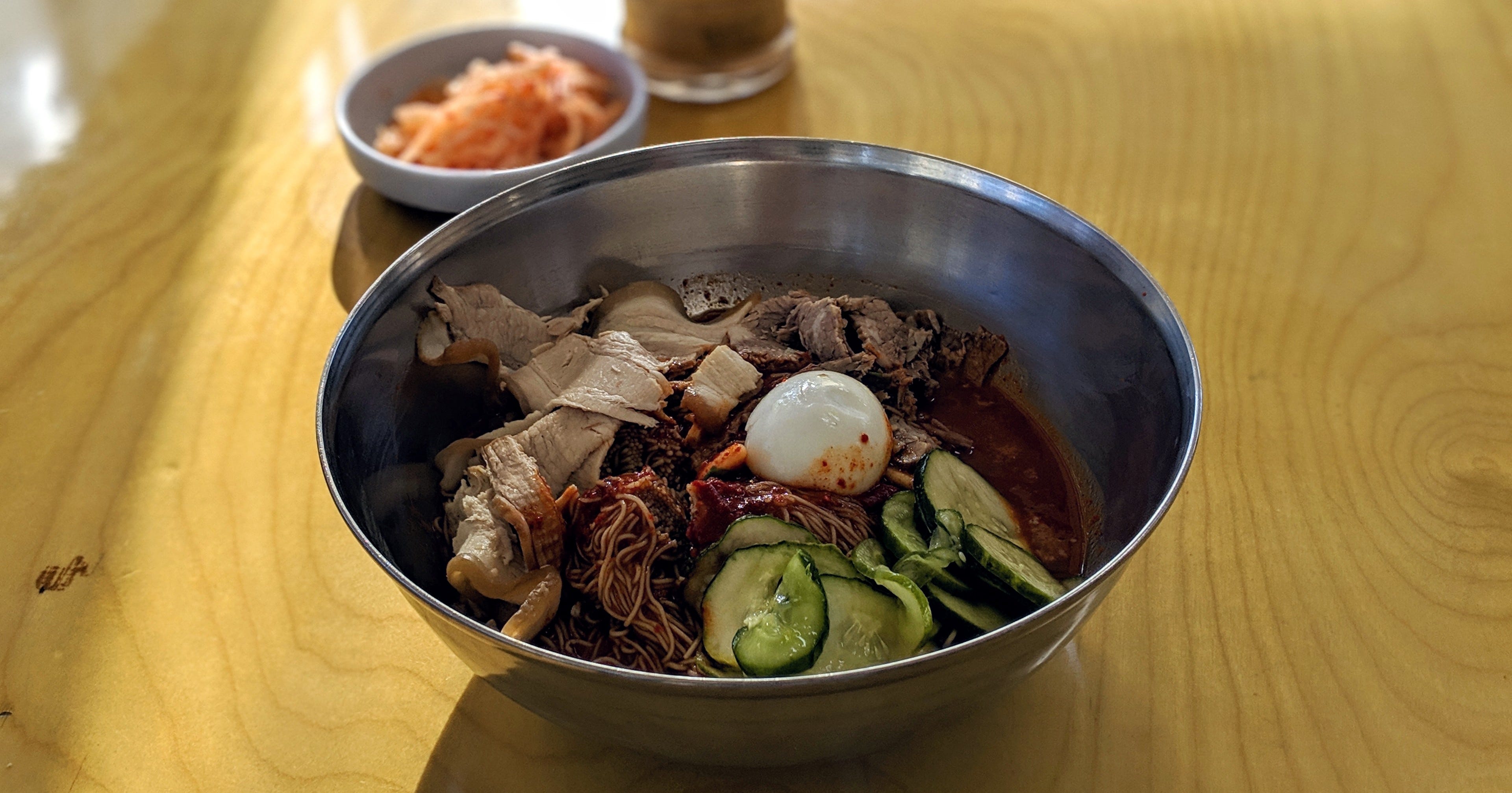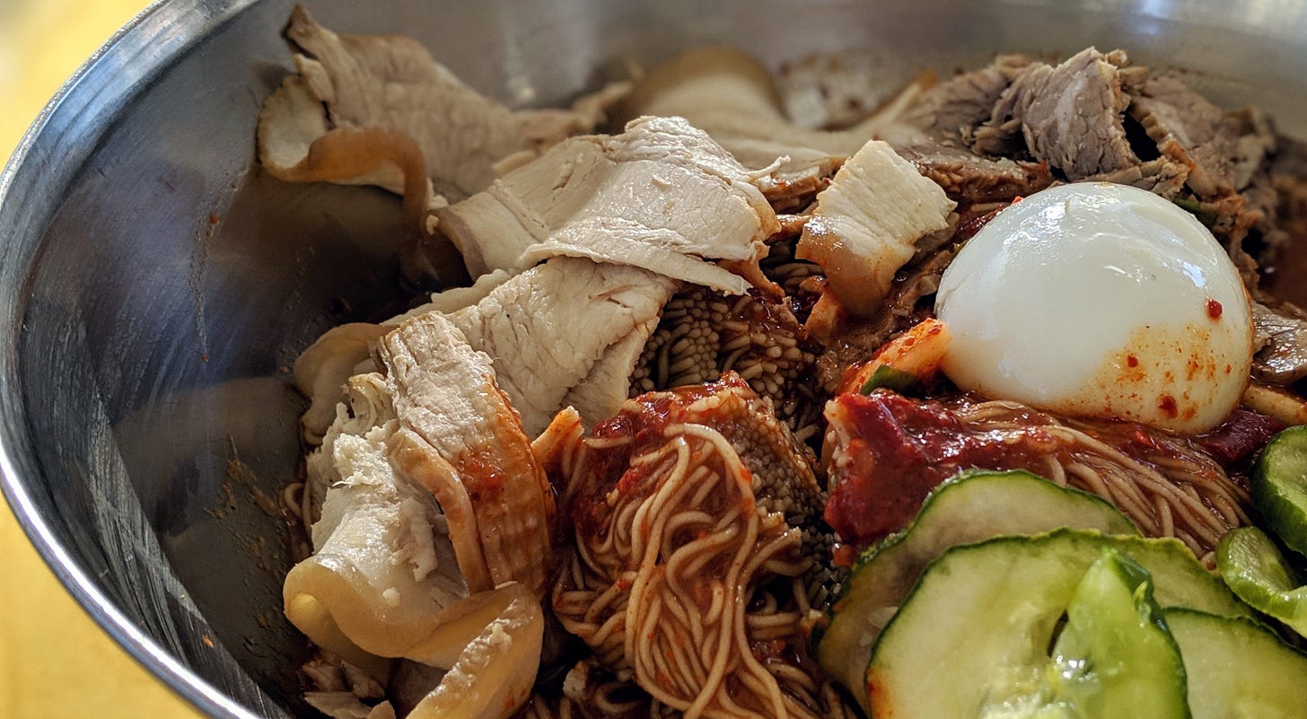 🇰🇵 NORTH KOREA / HISTORICAL: Ice cold naengmyeon is the star of this Koreatown restaurant, named for North Korea's second largest city.